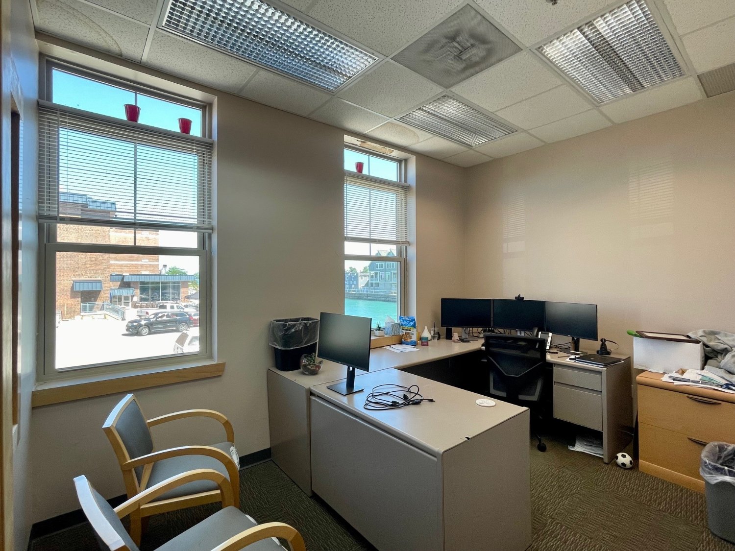 - Side offices, some with lakefront views, as well as generous, sunny common space.